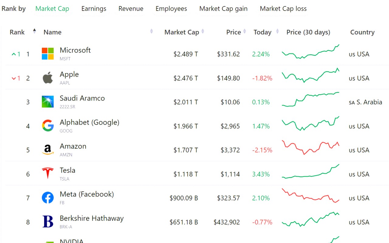 Top 50 companies in the world based on market capitalization.