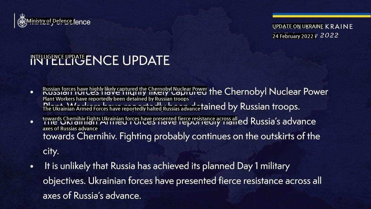 04:51 02/25/2022 The situation of the Russian-Ukraine war identified by the British Department of Defense.