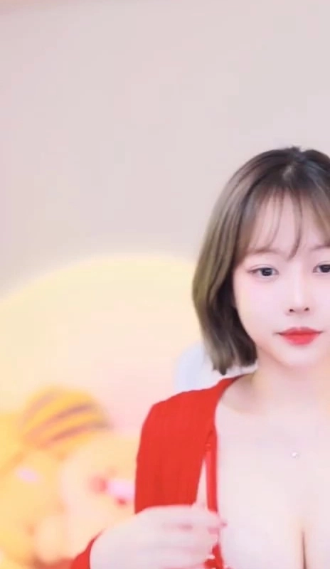 15:32 08/5/2024 (SOUND)Streamer beauty, pretending to be pretty, polka dot pattern dress, deep V-neck, cleavage