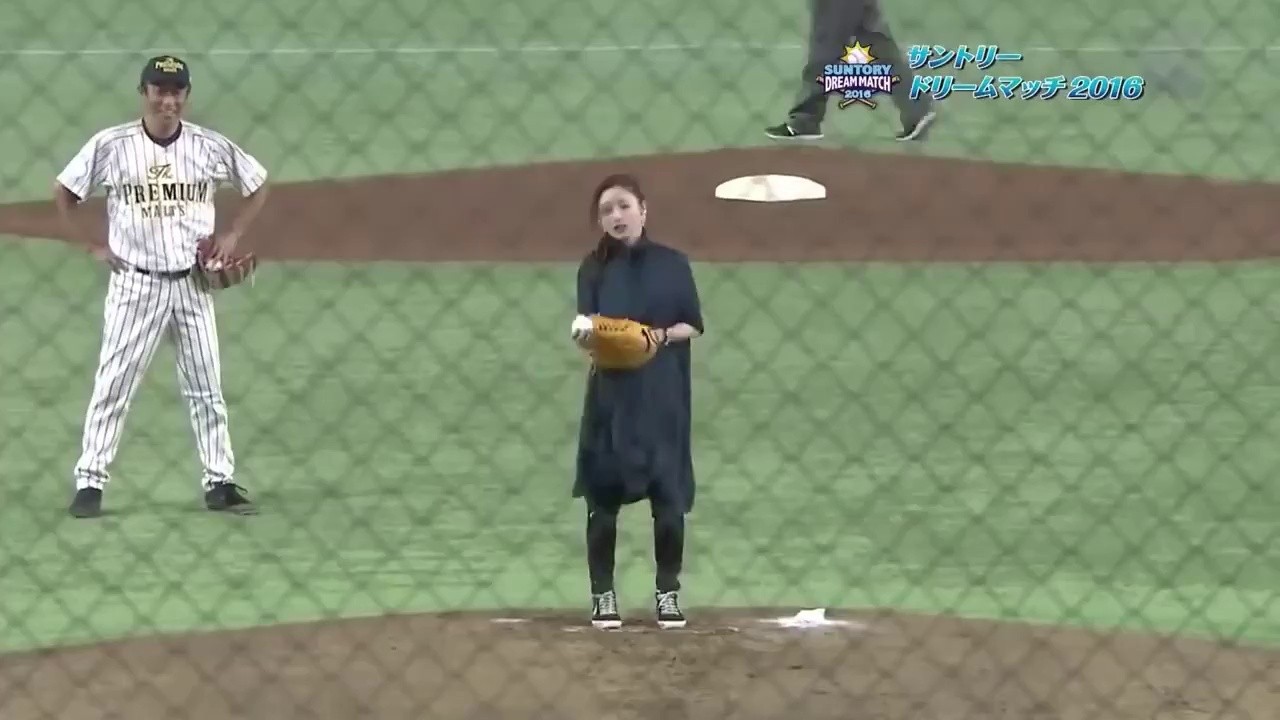 Japanese actress imitating Hideo Nomo’s tornado pitching form