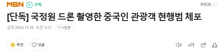 20:34 11/9/2024 [Exclusive] Chinese tourist arrested for taking drone photos of National Intelligence Service building