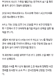 04:36 11/26/2025 [Breaking News] ‘Enraged’ by a friend who cursed his older sister… An active-duty soldier in his 20s who brandished a weapon was arrested in Busan.