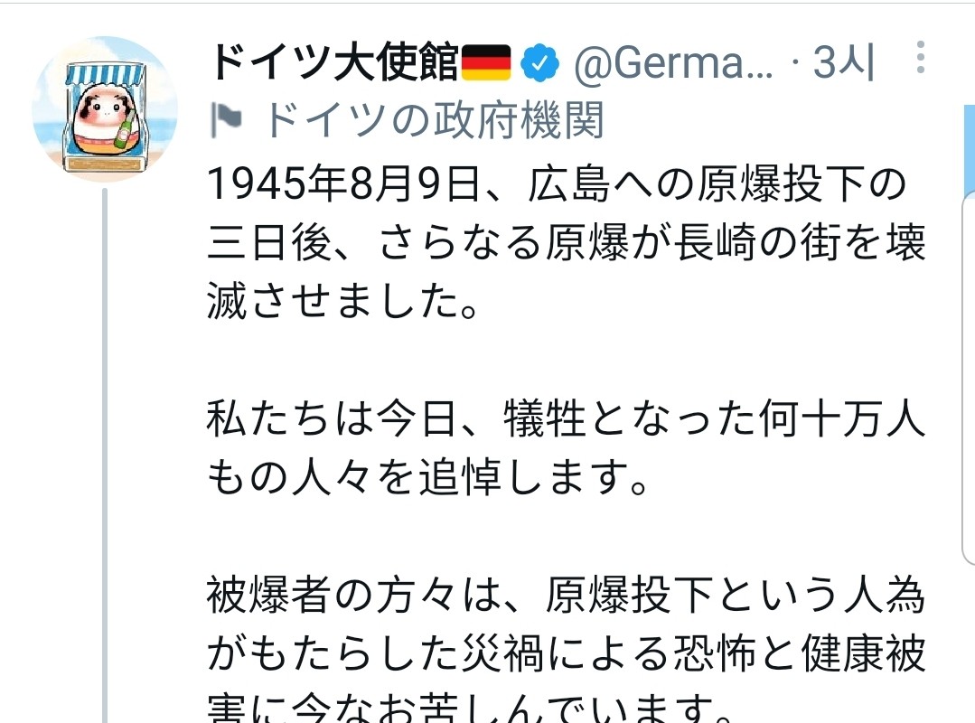 Japan) Twitter status at the German Embassy on August 9th.