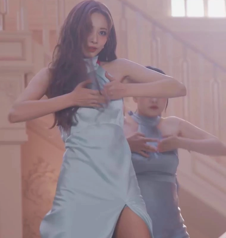 06:13 09/30/2024 Behind the scenes of the music video, string tank top, flowing cleavage, transparent bra strap, Twice Tzuyu