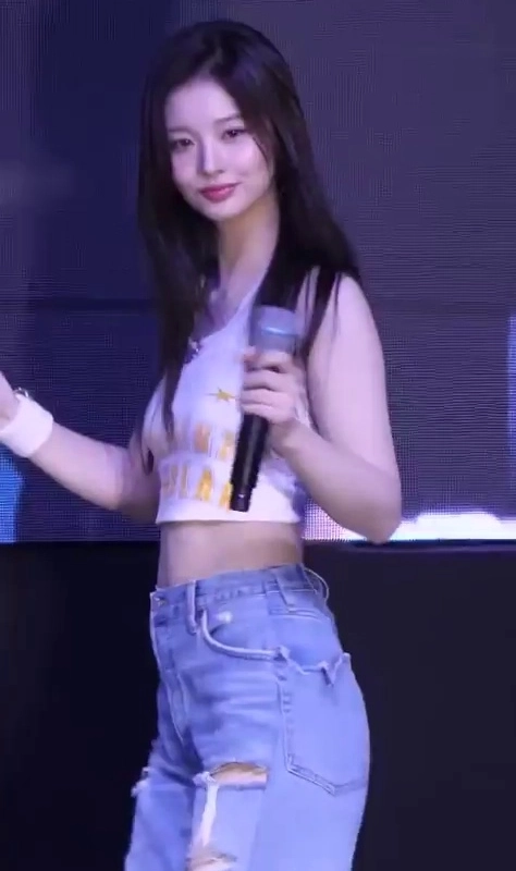 14:35 11/3/2024 ITZY Yuna practicing choreography Black jeans, narrow waistline, belly button, pelvis