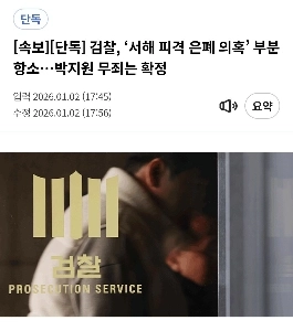 16:32 01/2/2026 [Breaking News] Prosecutors partially appeal only for false official documents in the Seohae shooting incident, Park Ji-won and others are found not guilty of abuse of power