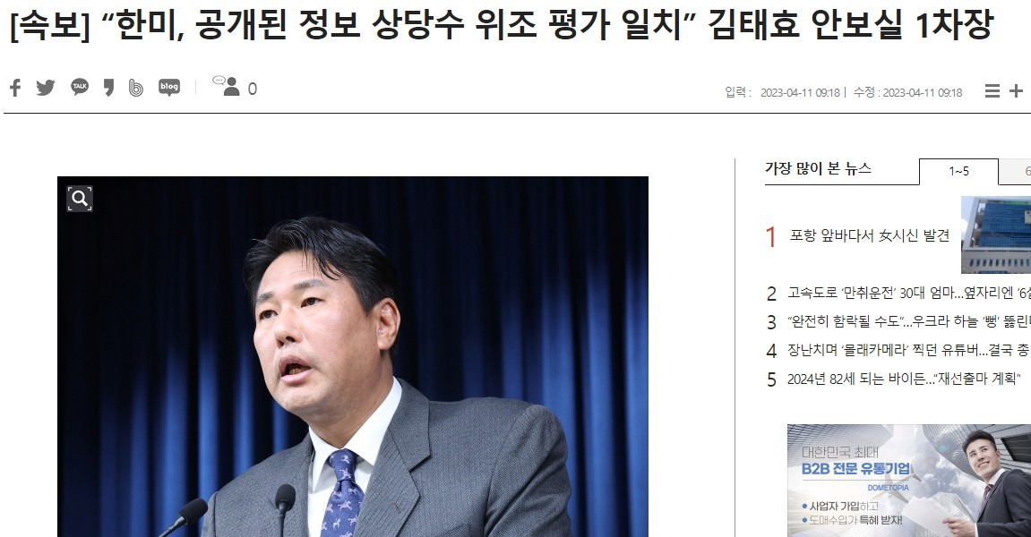 23:49 04/10/2023 Breaking News: South Korea and the U.S. agree on the assessment that many allegations of wiretapping by the U.S