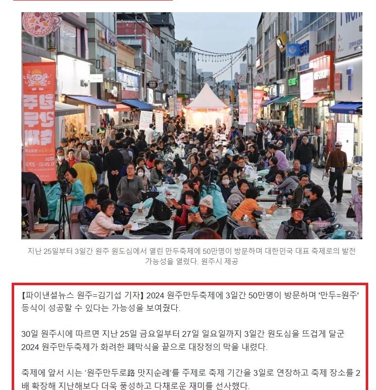19:04 11/1/2024 After stopping price gouging, 500,000 people flocked to Wonju Dumpling Festival, ‘5,000 Won Experiment’
