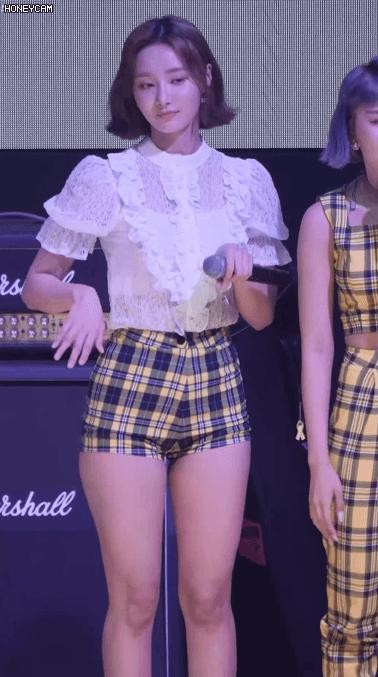 Red checkered hot pants. MOMOLAND Yeonwoo’s butt.