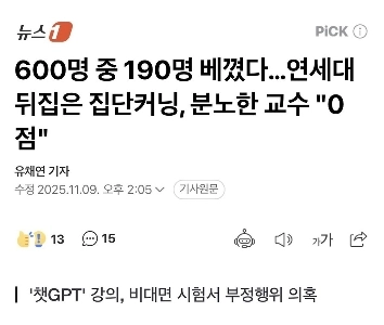 09:52 11/9/2025 Yonsei University, 190 out of 600 students cheated collectively and all received 0 points
