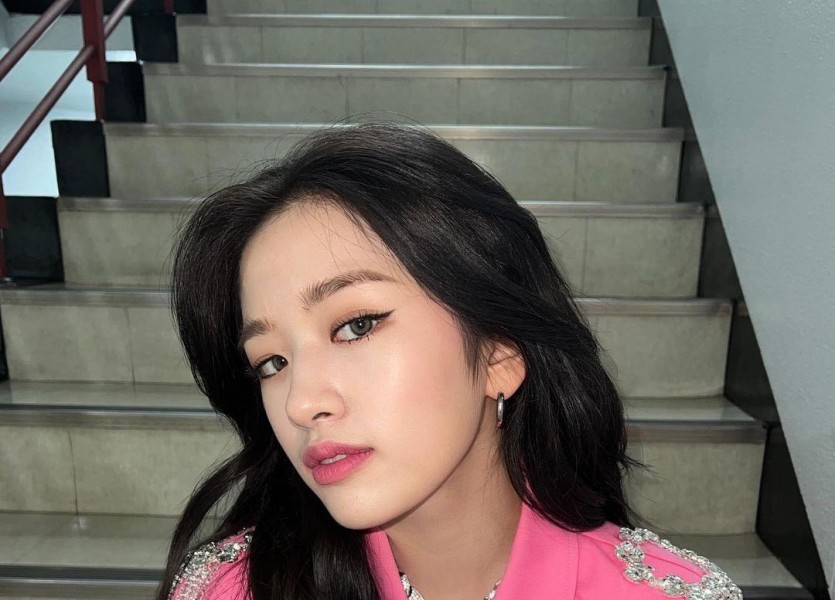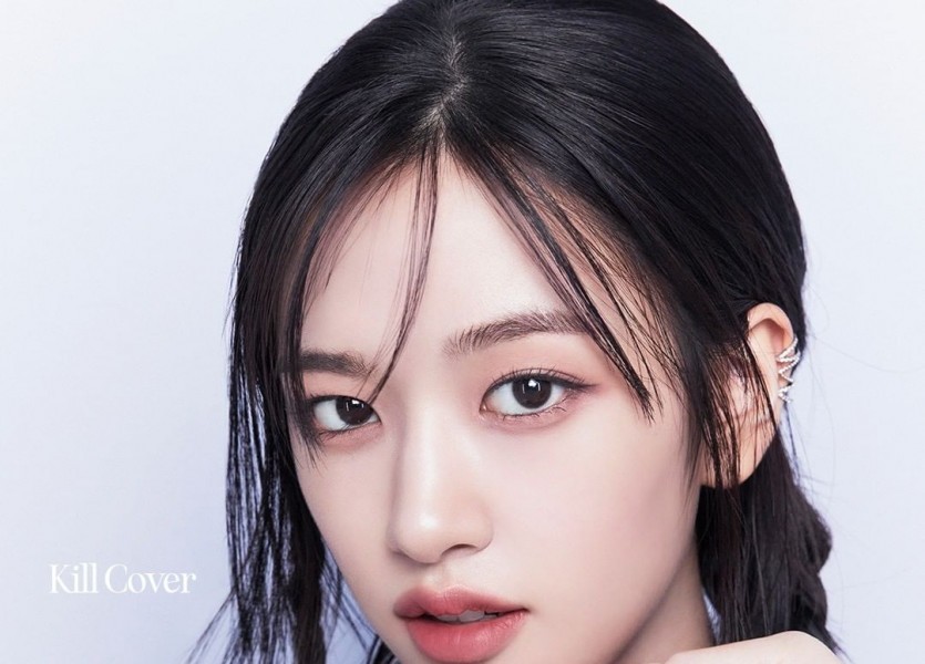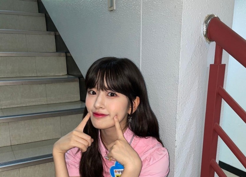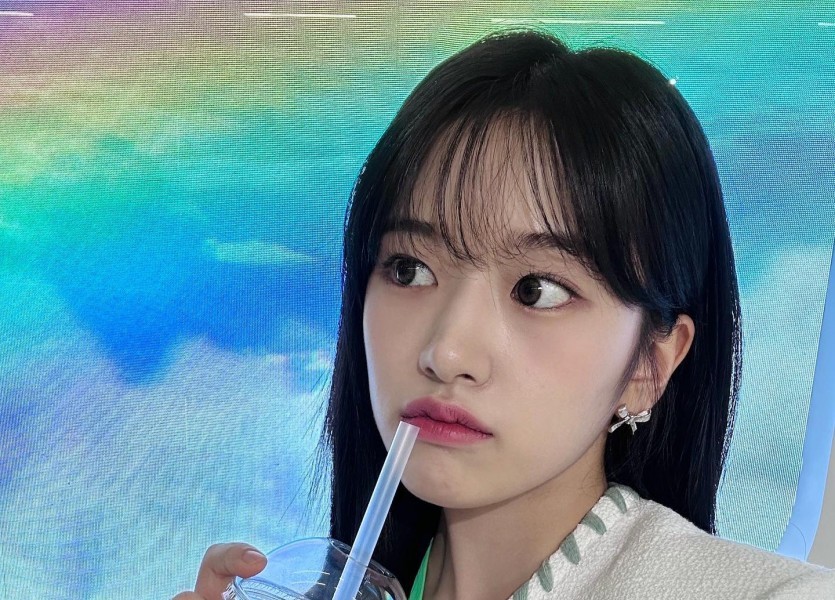 08:57 09/19/2023 Wearing a beret uniform skirt, sitting on the floor, spinning around with my thighs, Ive, Ahn Yujin
